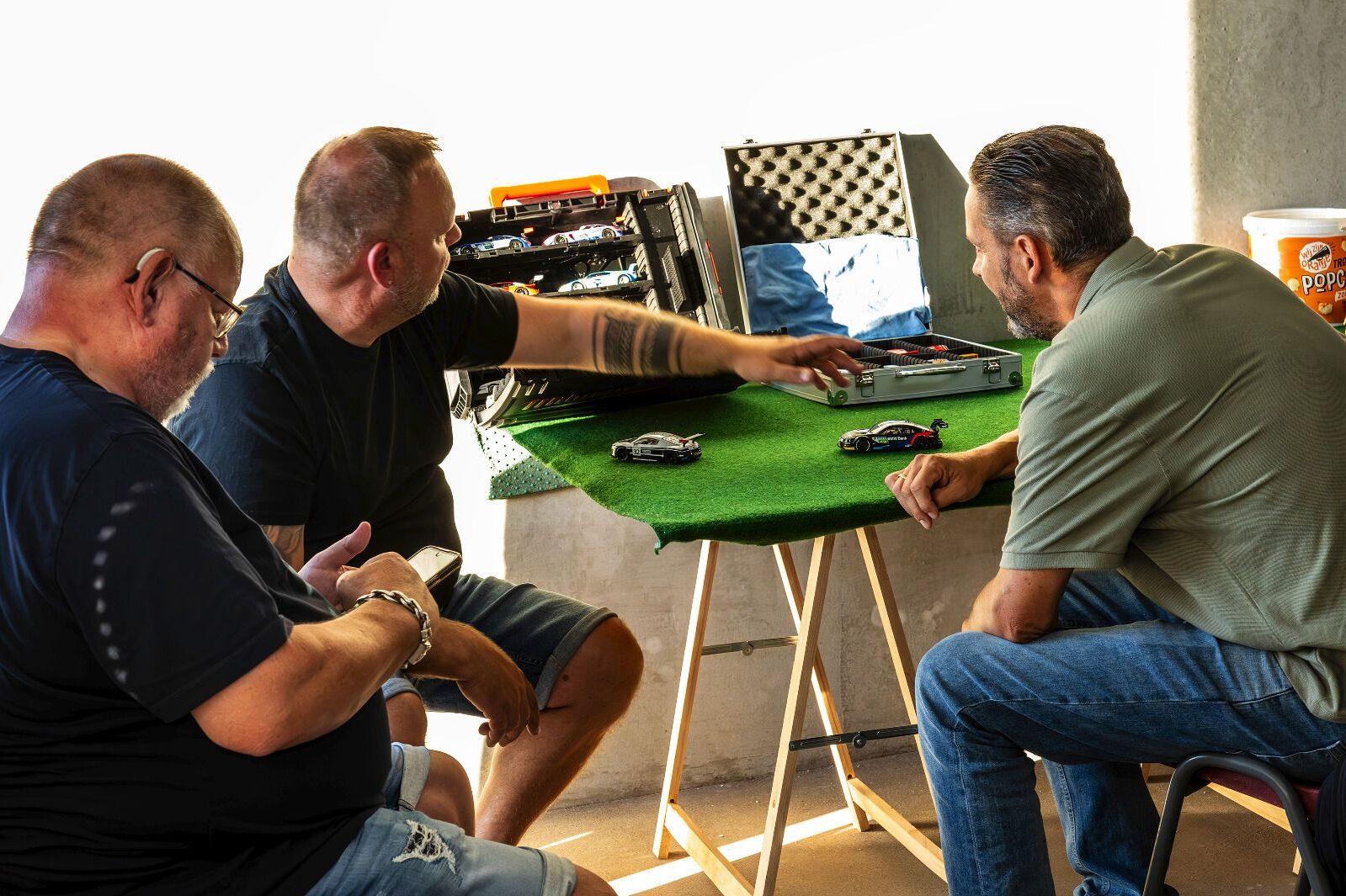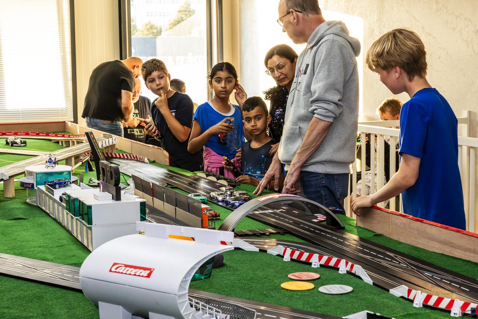 Gezellig een avondje onderling racen, ervaringen, tips en tricks uitwisselen, sleutelen aan de (eigen) auto’s en aan het eind van de avond een biertje of fris (die je dan wel zelf mee moet nemen)