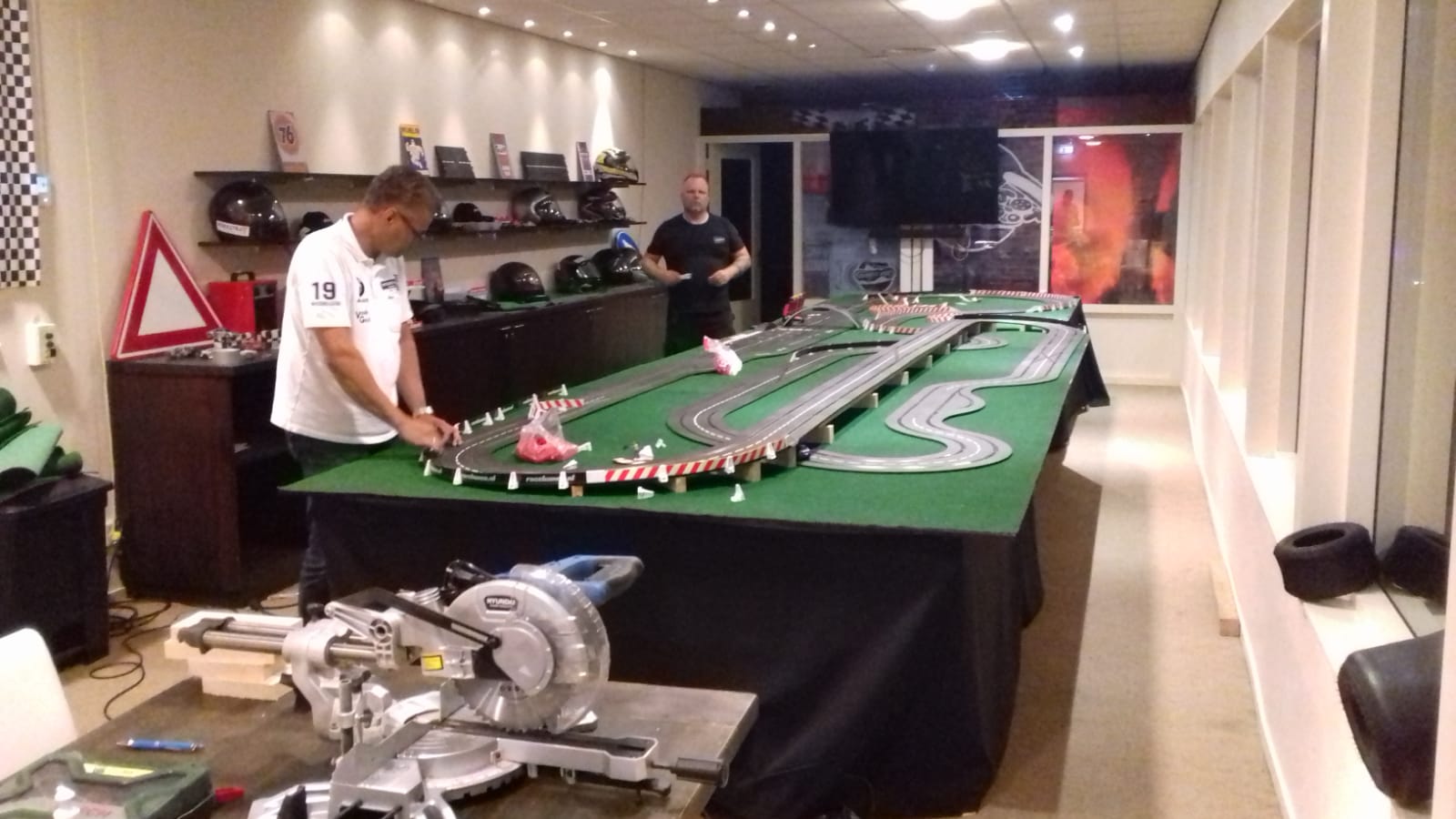 Na 2 weken klussen is de nieuwe baan gereed. Stevig frame, randen rondom, vangrails, stevige brug en de eerste baanaanpassing is al een feit